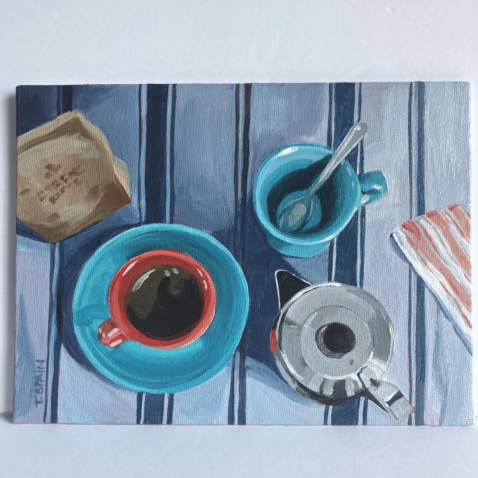 This tiny painting is perfect for a coffee bar, cafe, or breakfast nook. Add it to your kitchen or gift it to a coffee loving friend.